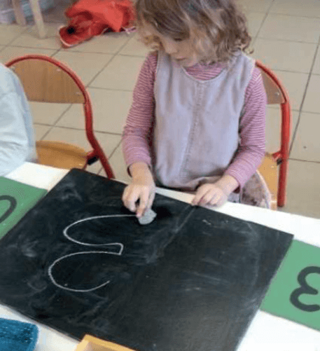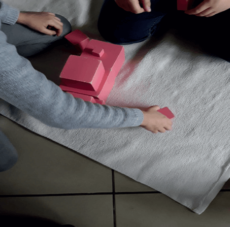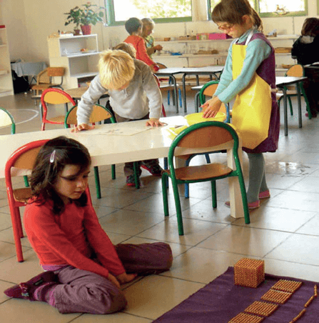 Elle part du concret et du matériel sensoriel pour conduire vers l’abstrait. En classe, les enfants manipulent du matériel spécifique en mathématiques et en français, lors de présentations individuelles ou en petit groupe.