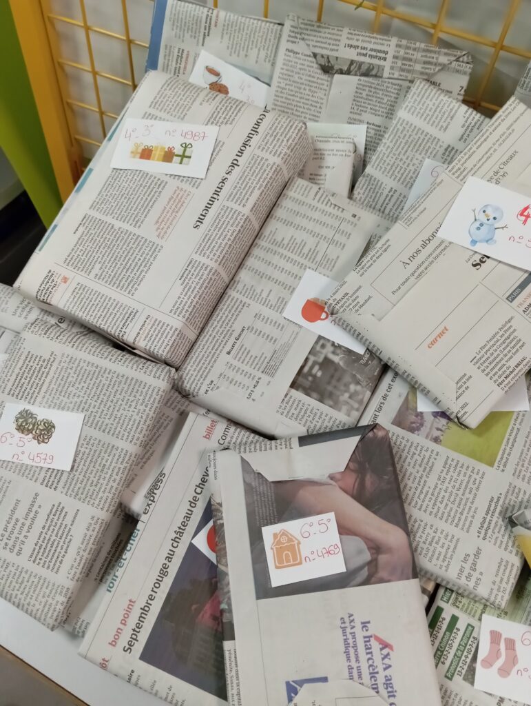 Chaque élève peut emprunter un ou plusieurs paquets et ainsi découvrir le livre que Mme Colas a sélectionné et emballé !